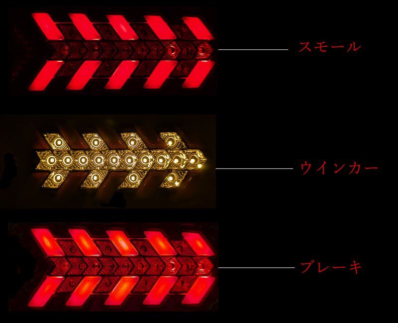 ◆シーケンシャルウインカー仕様で内側から外側へウインカーが流れるように発光します。